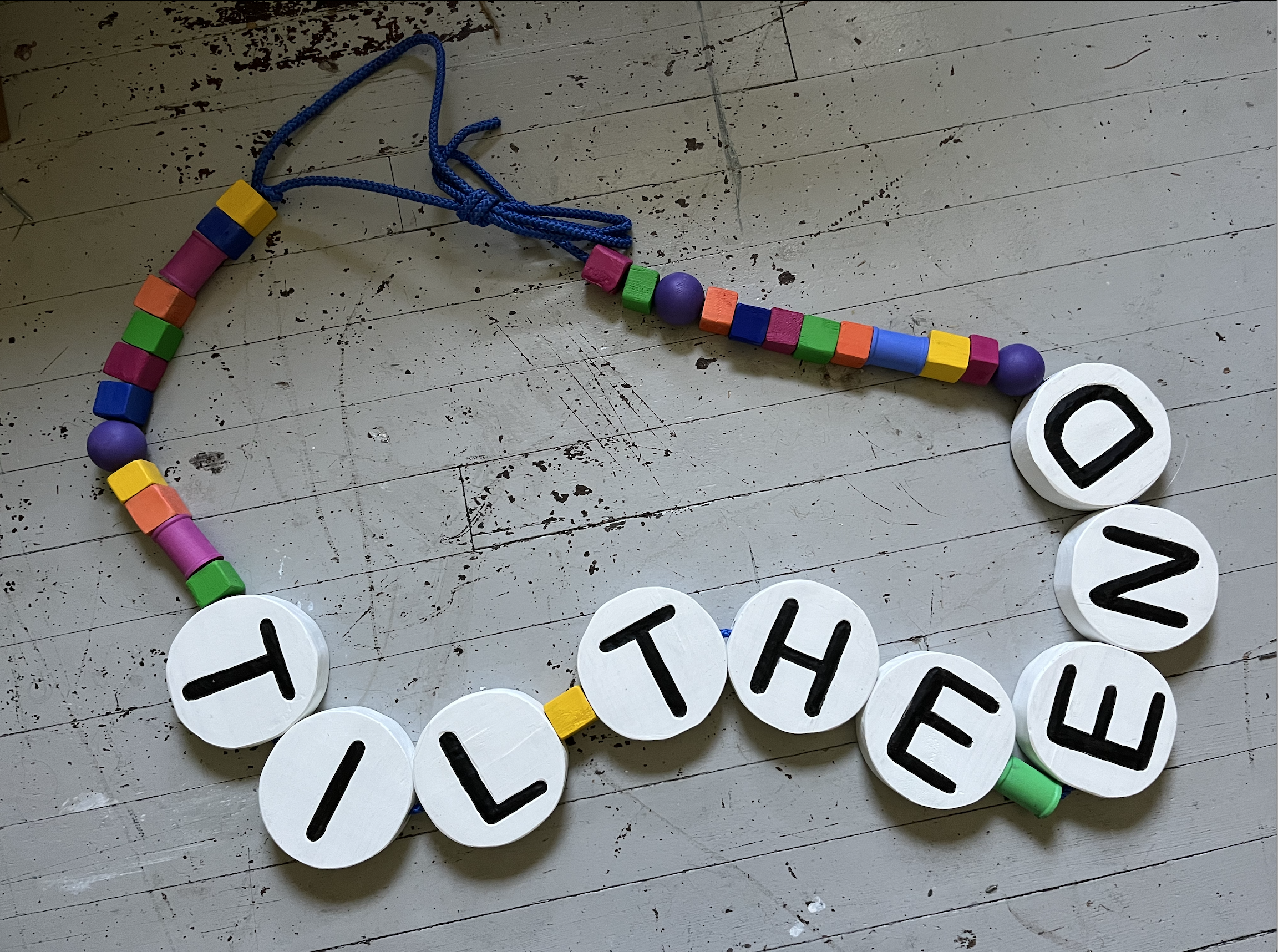 Exchange of Vows - wood, acrylic paint, rope - 108” long