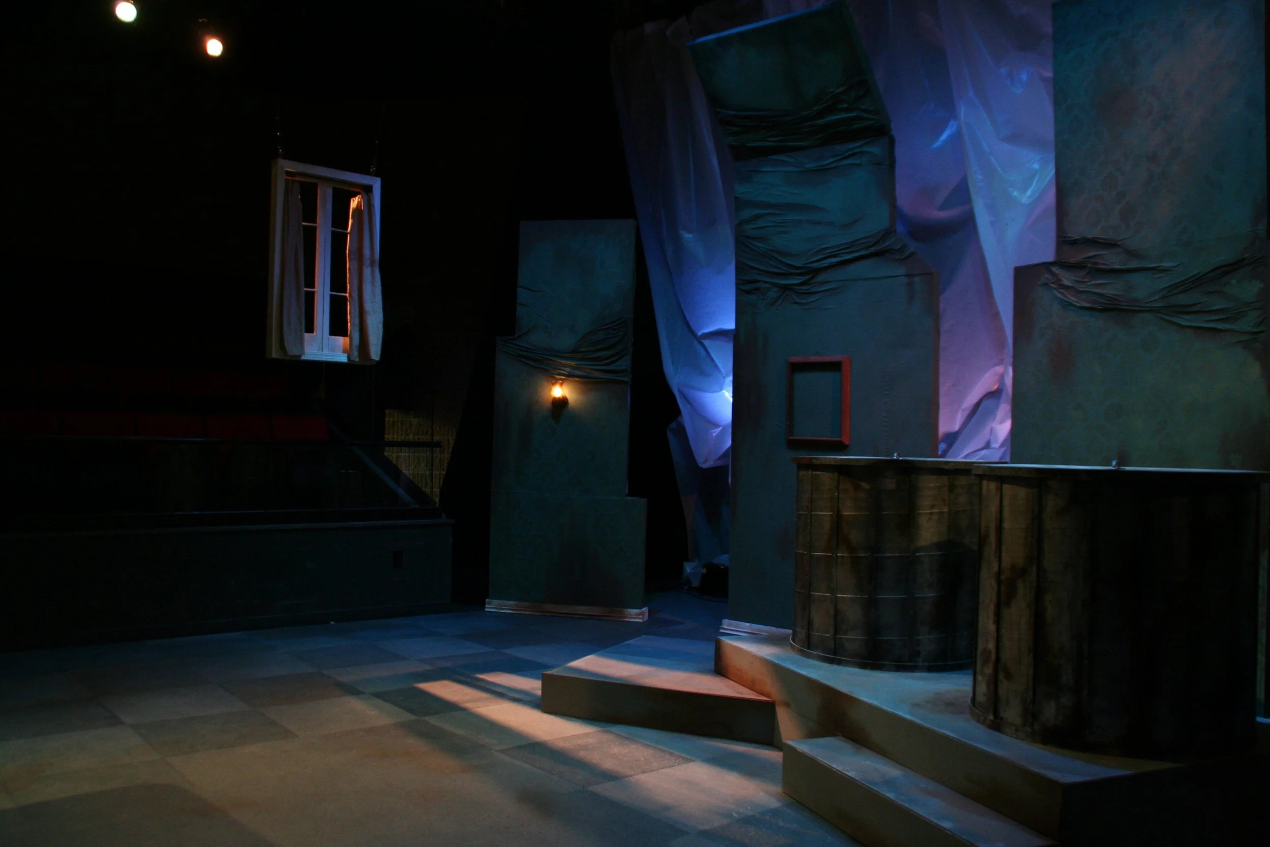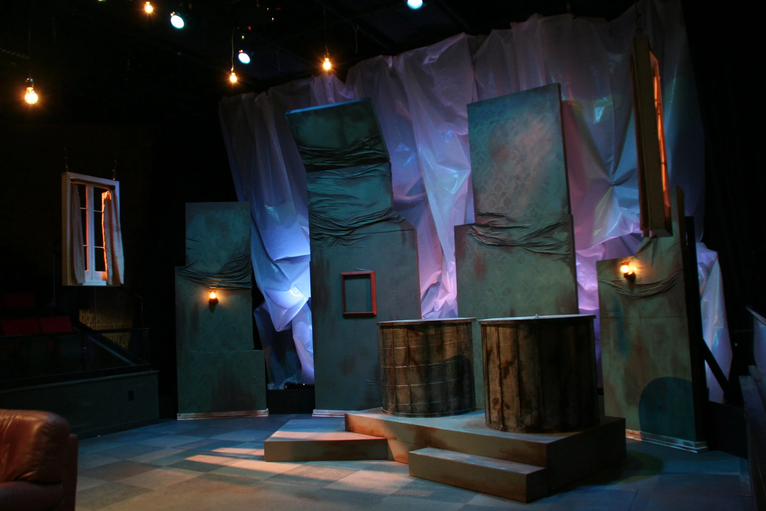 The overall mood for the play was one of repetition, destitution, neglect, and the never-ending march of time, all seen in the dirty, rusty, moldy, cracked, and altogether gross state of the scenery.