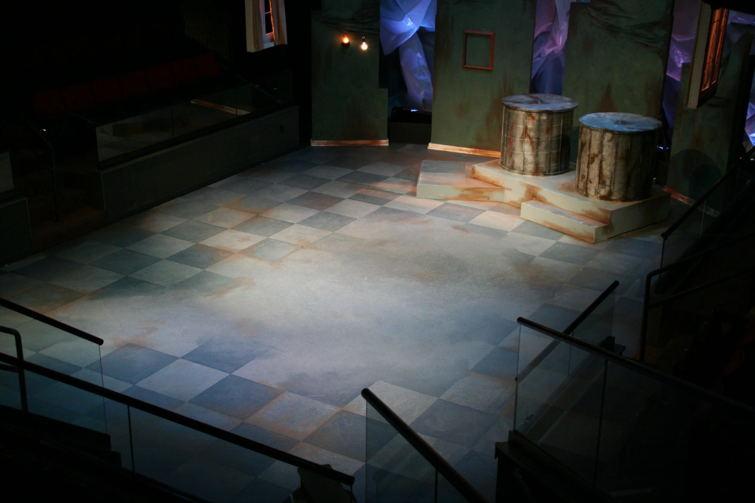 In October 2021, I did the scenic design for a student-directed production of Endgame by Samuel Beckett. The term Endgame refers to the point in a chess game where only a few pieces remain on the board. This terminology was the backbone for how I approached the scenery for this production.