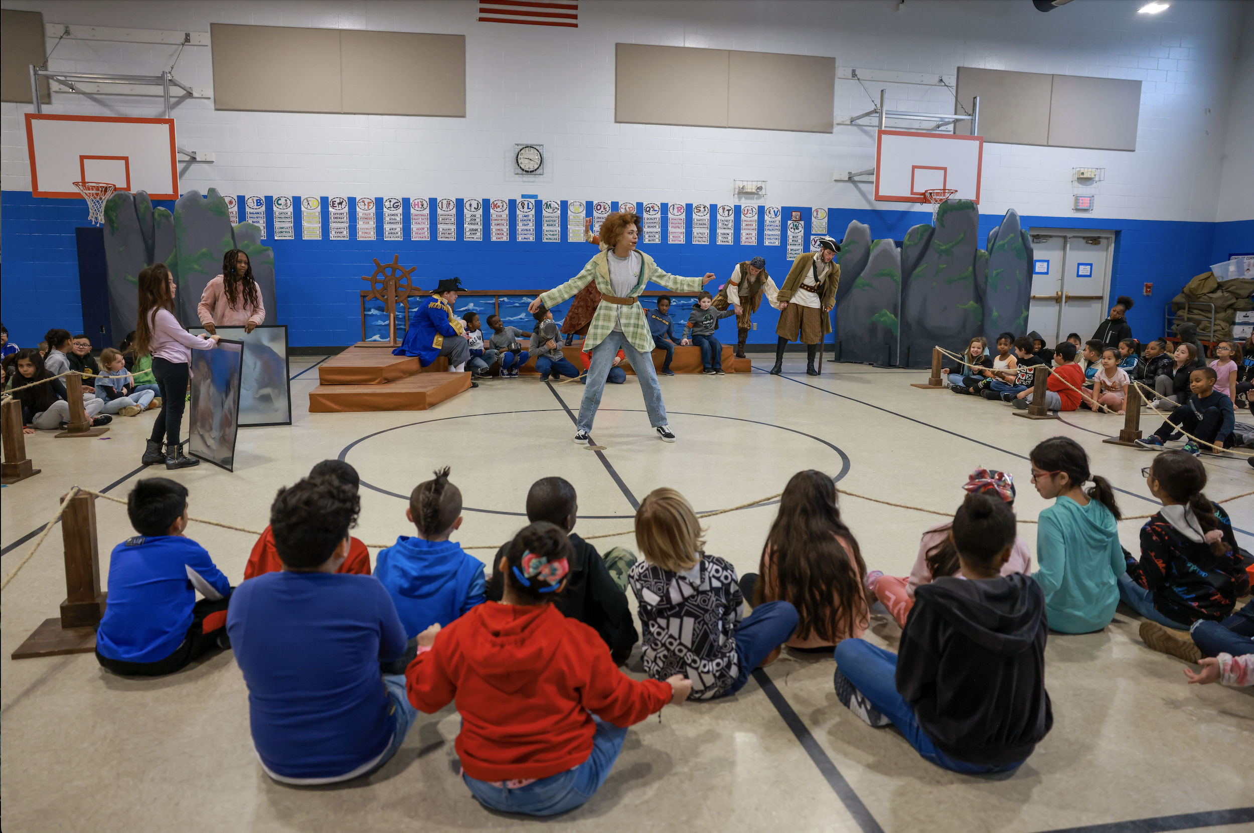 March 2023 brought on the annual show for young audiences, this time a traveling show titled Treasure Island by Steve and Kathy Hotchner. This show relies heavily on participation with the children in the audience, which meant tailoring the scenery to be safe and fun for the kids involved, while also making it portable and easy to assemble on site.